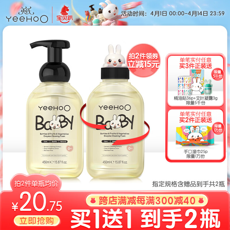 ¥39 英氏奶瓶清洗剂婴儿洗奶瓶清洗水果玩具宝宝餐具果蔬洗洁精便携装 【到手2瓶】奶瓶果蔬清洁剂450ml 49