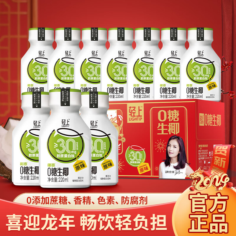 ¥29.9 轻上【大瓶装】椰子汁0糖生椰饮料饮品轻上1L礼盒装送礼走亲戚 0糖生椰(原味)220ml*10瓶 59.9