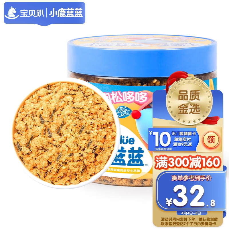 ¥59.9 小鹿蓝蓝_宝宝肉松海苔 儿童零食儿童肉松拌饭拌面料鲜猪肉调味 80g 69.9