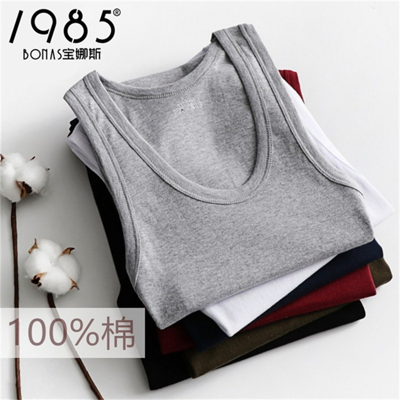 ¥29.9 宝娜斯背心男2件装 夏青年紧身打底运动无袖修身健身运动打底汗衫背心 纯棉背心 白色1件+灰色1件 XXL 180 59.9