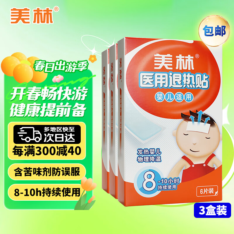 ¥95.68 美林 医用退热贴6贴*3盒婴儿宝宝物理降温退烧贴冰宝贴 0-2岁婴儿用品家中常备舒适降温婴幼儿冷敷舒适 113.68