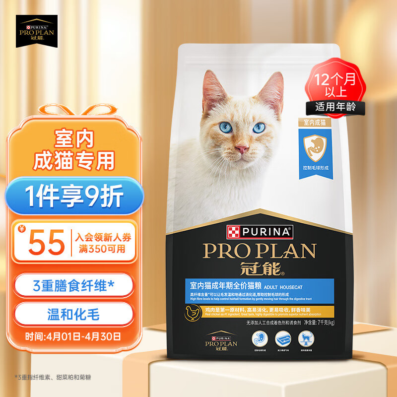 ¥291 冠能猫粮 室内成猫猫粮7kg 添加膳食纤维 控制毛球 396