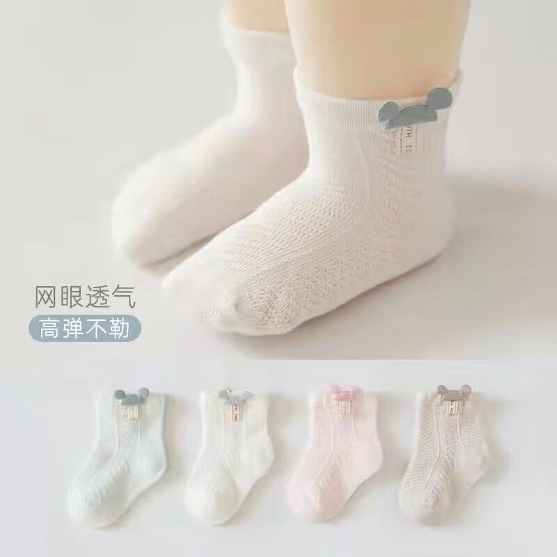 ¥11.9 彩虹房子婴儿袜子夏季薄款春秋棉质宝宝网眼透气新生幼儿童短无骨0一3月 米奇袜随机三双装 M【1-3岁】建议脚长14cm 21.9