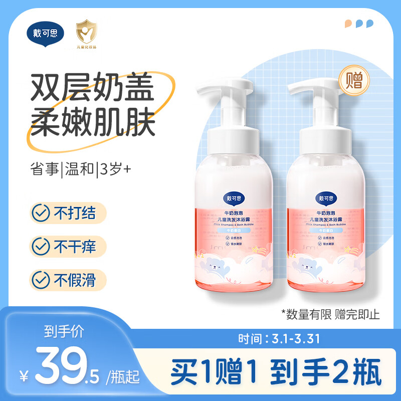 ¥79 戴·可·思(Dexter)儿童宝宝洗发水 沐浴露 牛奶泡泡洗发沐浴二合一 400ml 89
