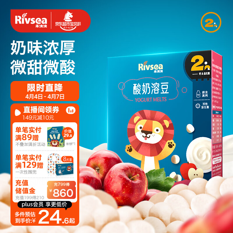 ¥31.8 禾泱泱溶豆豆 宝宝零食 水果溶豆 高钙含蛋白质 酸奶溶豆苹果味18g 32.8