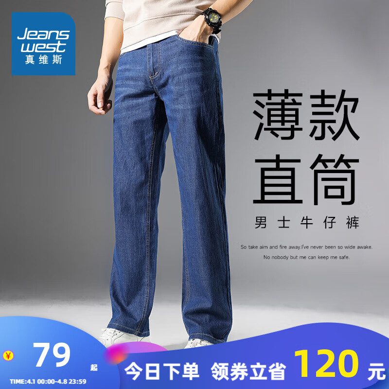 ¥59 真维斯男装弹力牛仔裤 春秋款休闲时尚水洗高街牛仔长裤 LYP A款深蓝色2530(直筒) 34 199