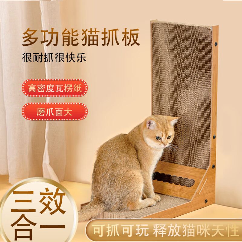 ¥11.8 宠辞典三角猫抓板耐磨不掉屑猫窝立式猫爪板沙发耐抓猫咪玩具猫爬架一体 L型猫抓板(+猫条一支) 14.8