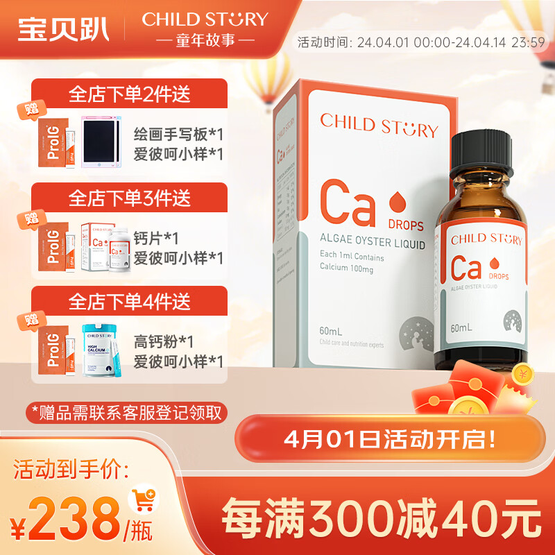 ¥218 童年故事Child Story海藻钙滴剂 婴幼儿钙儿童宝宝液体钙补钙滴剂 加拿大进口 238