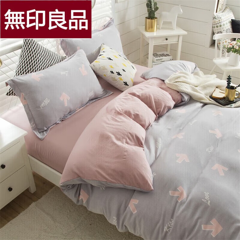 ¥69.9 无印良品水洗棉四件套 ins简约小清新被套床单床品套件 等待遇见 200*230cm被套床单款四件套 169.9