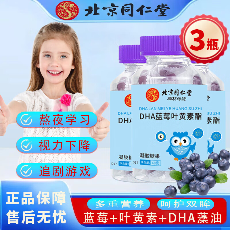 ¥29.9 罗氏贝特北京同仁堂 DHA蓝莓叶黄素软糖 叶黄素儿童 儿童叶黄素软糖 蓝莓叶黄素 dha叶黄素 【DHA蓝莓叶黄素软糖】3瓶 59.9