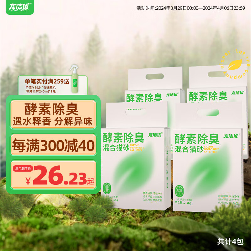 ¥104.9 宠洁优(CHONGJIEYOU)宠洁优酵素除臭混合猫砂结团净尘不沾底遇水释香豆腐砂抑菌吸水 【酵素除臭】混合猫砂4包 119.9