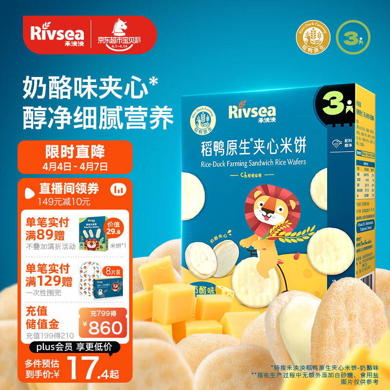 ¥23.8 禾泱泱米饼 儿童零食 磨牙早餐饼干 稻鸭夹心米饼奶酪味32g 24.8