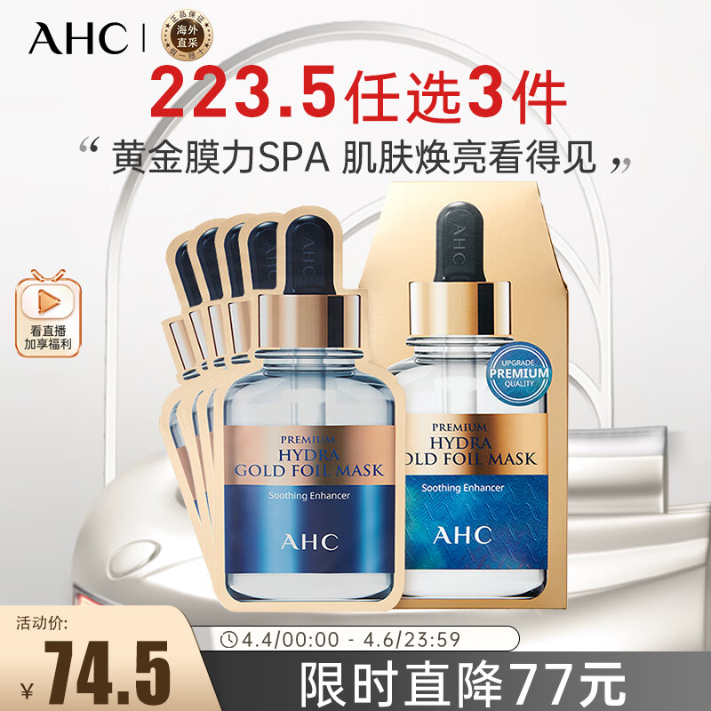 ¥85 AHC黄金锡纸蒸汽补水面膜 5片/盒 保湿焕亮 生日礼物送女友 90