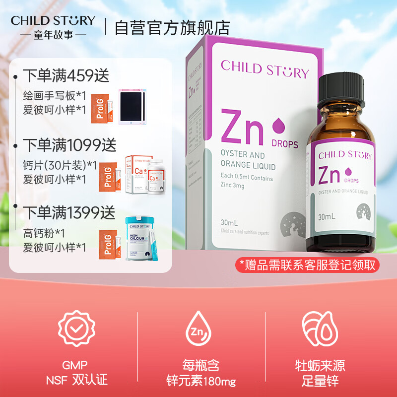 ¥243 童年故事Child Story牡蛎橙复合饮液口服液 锌Zn30ml(加拿大原装进口) 液体锌滴剂 248