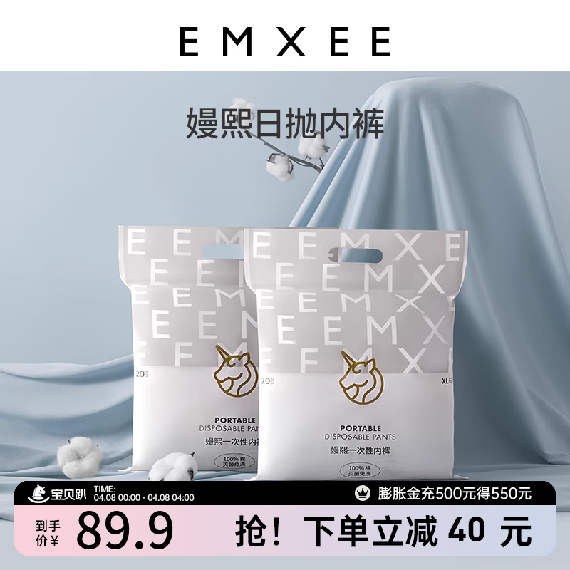 ¥101.9 嫚熙(EMXEE)孕妇内裤产妇一次性内裤旅游出差月子便携装免洗纯棉内裤 20条袋装 XXXL(75kg以上) 129.9