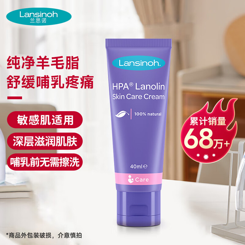 ¥79 兰思诺(LANSINOH)羊脂膏乳头膏产妇乳头皲裂膏 哺乳期舒缓乳滋润乳头霜 天然安全 羊毛脂膏40ml 108