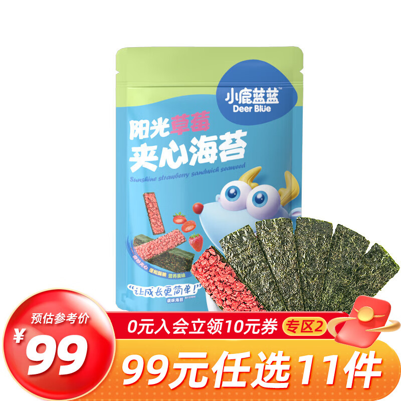 ¥25.9 小鹿蓝蓝【专区二选11】宝宝饼干零食宝宝零食婴童饼干 海苔夹心脆-夹心草莓 26.9