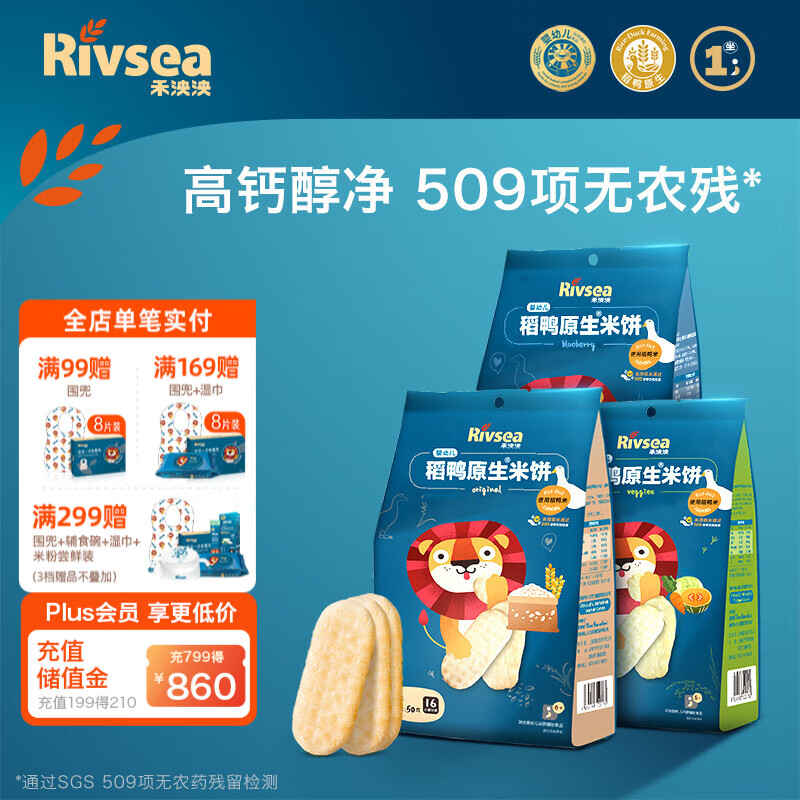 ¥102.4 禾泱泱米饼 宝宝零食 无添加白砂糖稻鸭原生 入口易溶 婴幼儿米饼3袋(3口味各1袋) 119.4