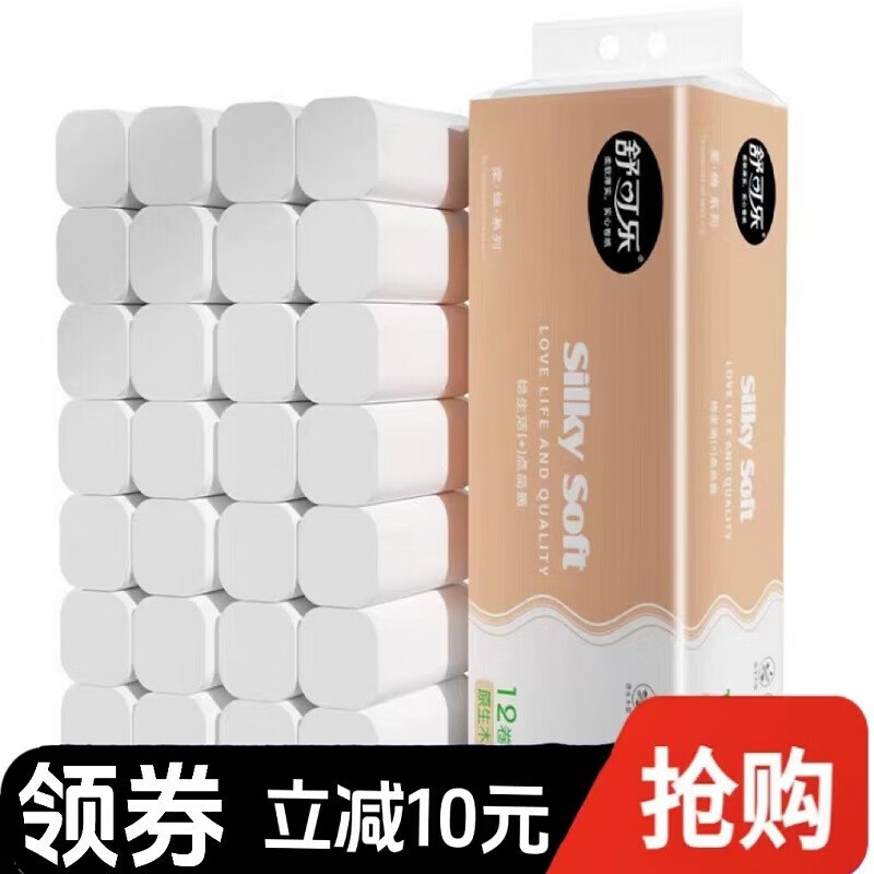 ¥5.8 舒可乐卷纸卫生纸巾无芯提装加厚家用卷筒纸手纸厕纸卷纸实惠装12卷 15.8
