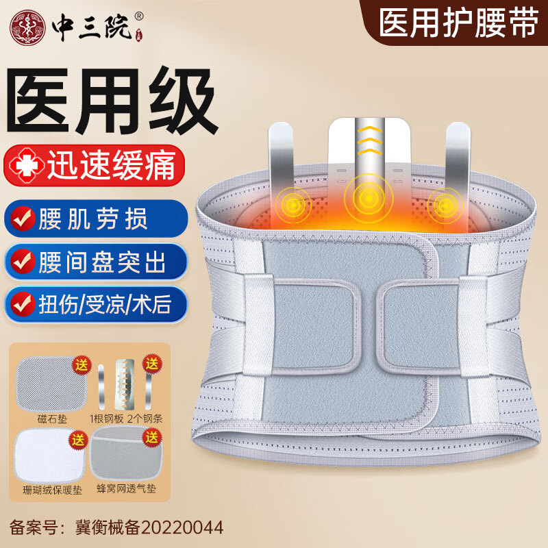 ¥79 【中三院 】医用护腰带腰间盘突出运动腰椎腰肌劳损腰椎脱固定椎间盘保暖支撑腰围带钢板男女士 银灰-仿腰椎支撑板+曲度专利支撑板 L 139