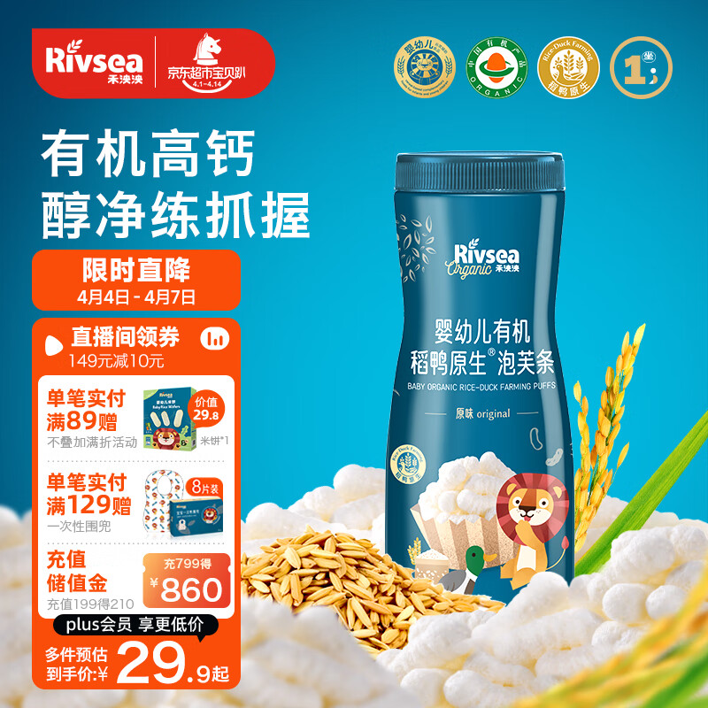 ¥34.82 禾泱泱婴幼儿有机泡芙条 宝宝零食6个月以上 稻鸭原生泡芙条原味32g 35.82