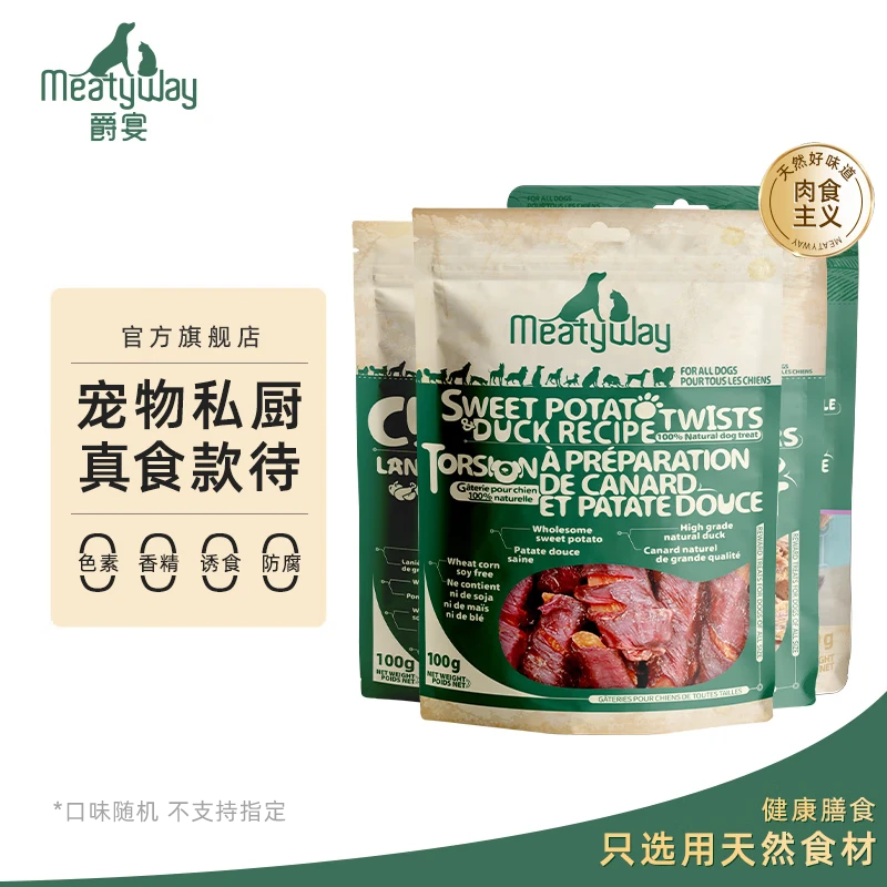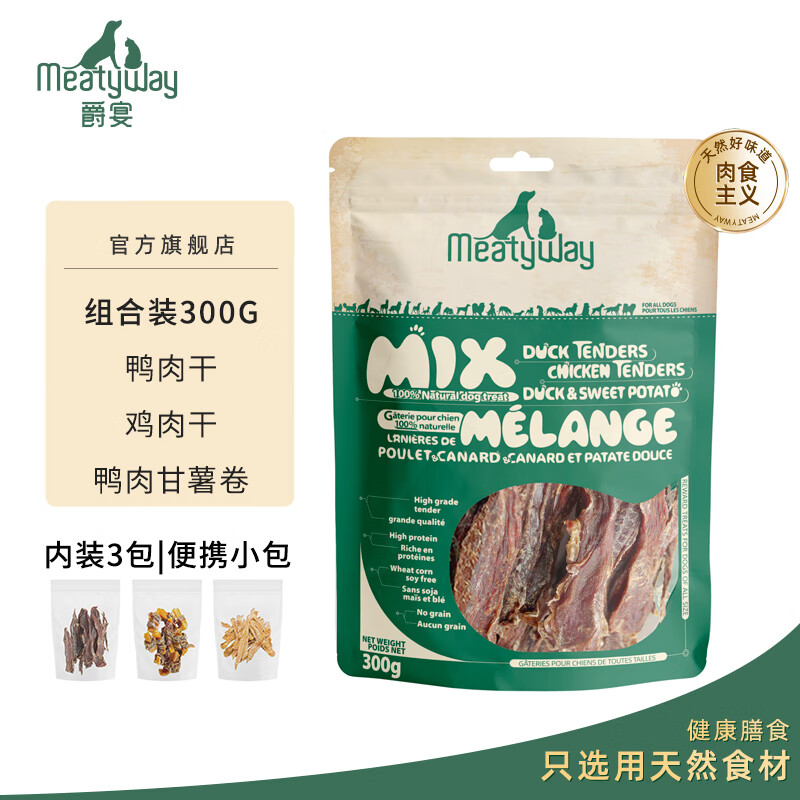 ¥48 Meatyway爵宴狗零食新品训犬大礼包300g 超市同款鸭胸肉干甘薯卷鸡肉干 零食组合装300g 63