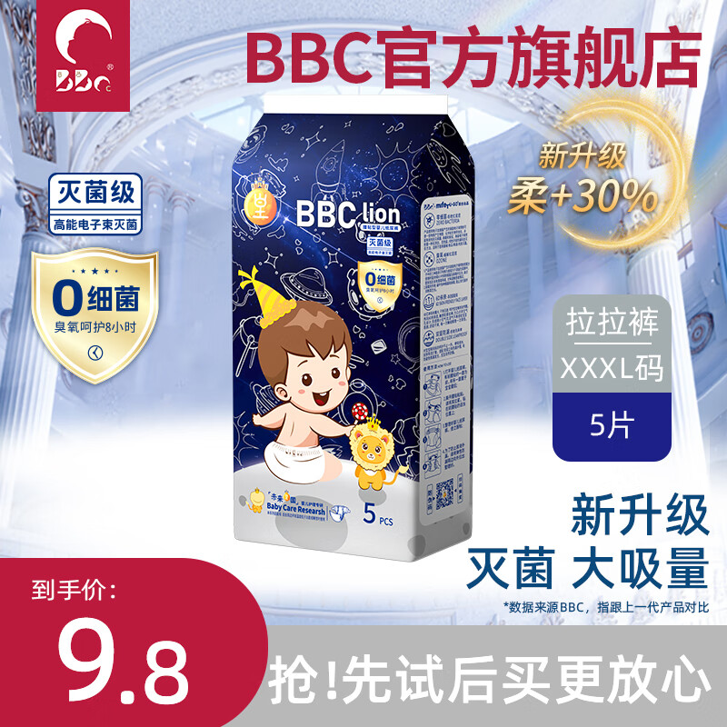 ¥9.8 BBC纸尿裤大吸量拉拉裤婴儿尿不湿超薄透气女男宝宝u先试用装 未来皇国拉拉裤XXXL5片 20.8