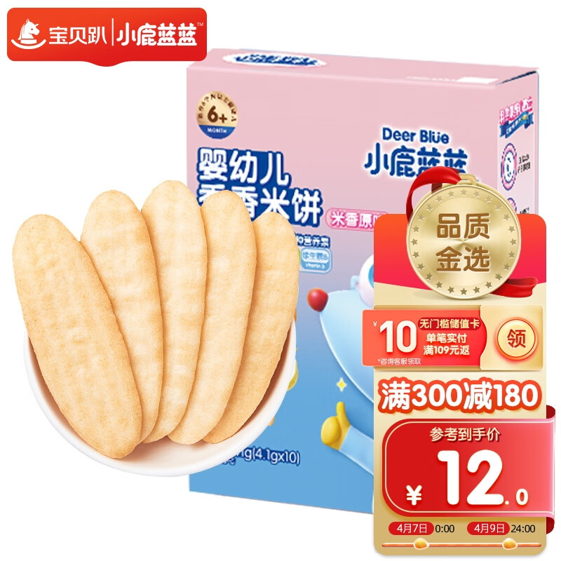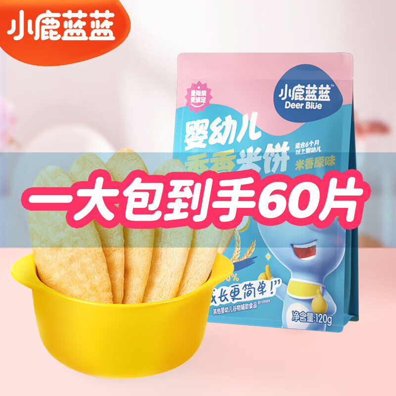 ¥19.9 小鹿蓝蓝 婴幼儿香香米饼 宝宝零食儿童零食 米香原味 超值装(60片)120g 29.9