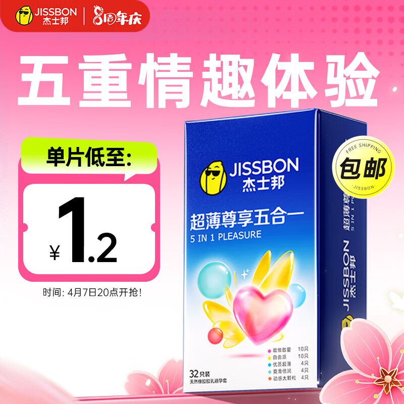 ¥49.1 杰士邦 超薄避孕套 安全套 尊享五合一32只组合装 进口套套男用女用 计生用品成人用品 49.1