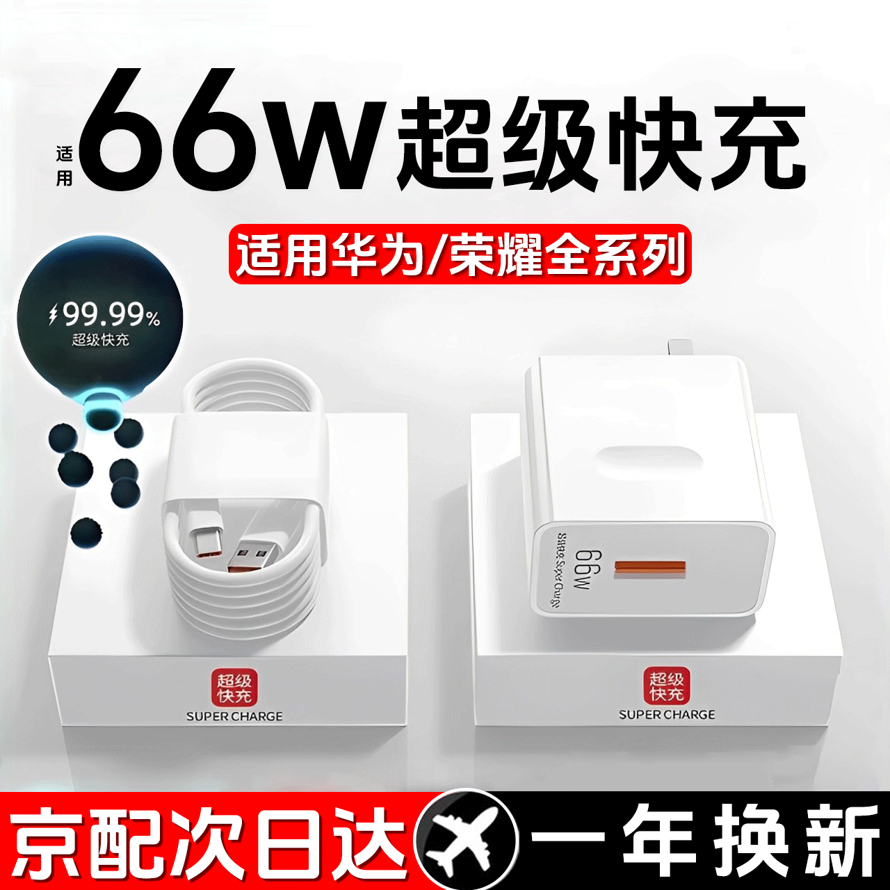 ¥12.9 时途适用华为66w充电器100W快充头mate60/p40/30/50/nova8/9/10/12/11ultra荣耀80/70pro/magic5手机插 【套装】66W闪充头+1米线 34.9