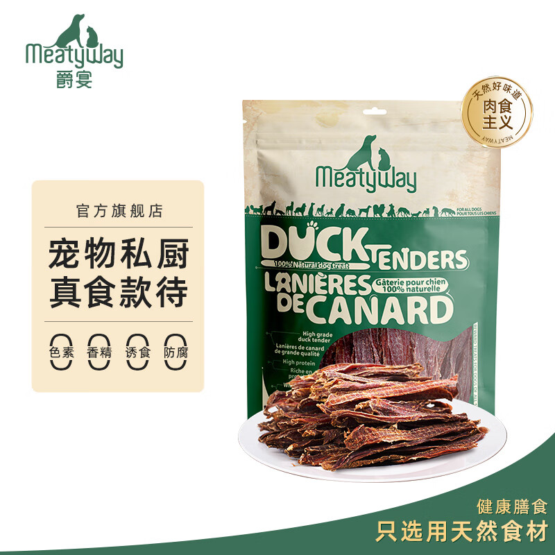 ¥143 Meatyway爵宴狗零食鸭肉干 宠物狗狗训练奖励磨牙棒肉干犬零食 纯脆鸭肉干908g 158