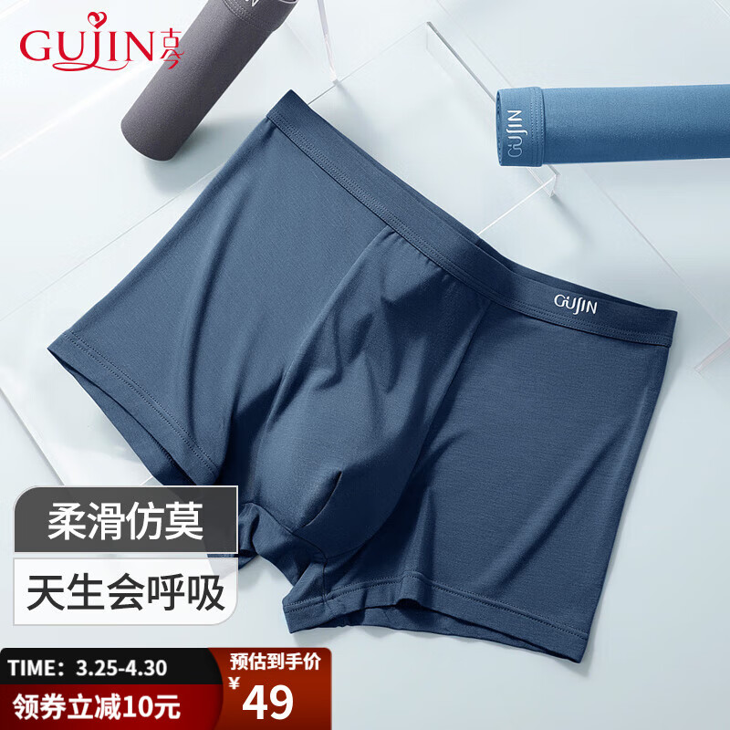 ¥39 GUJIN古今男士平角内裤宽松透气男生新款仿莫短裤男四角短裤衩男3条装 中蓝-深蓝-深灰 XL/175 59