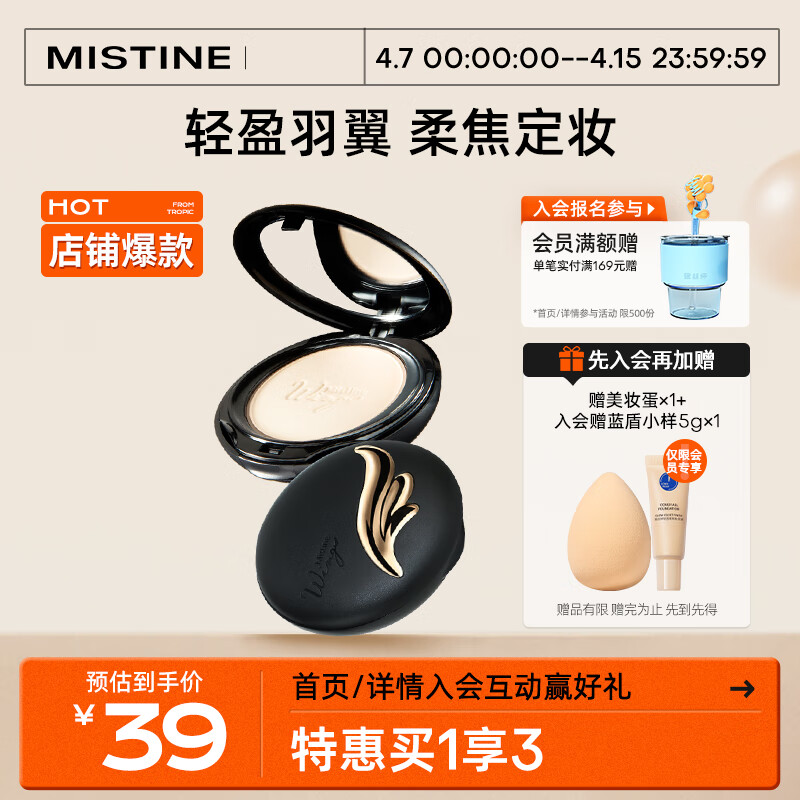 ¥29 Mistine蜜丝婷轻薄羽翼粉饼S1 10g 象牙白修饰遮瑕 干湿两用 泰国进口 39