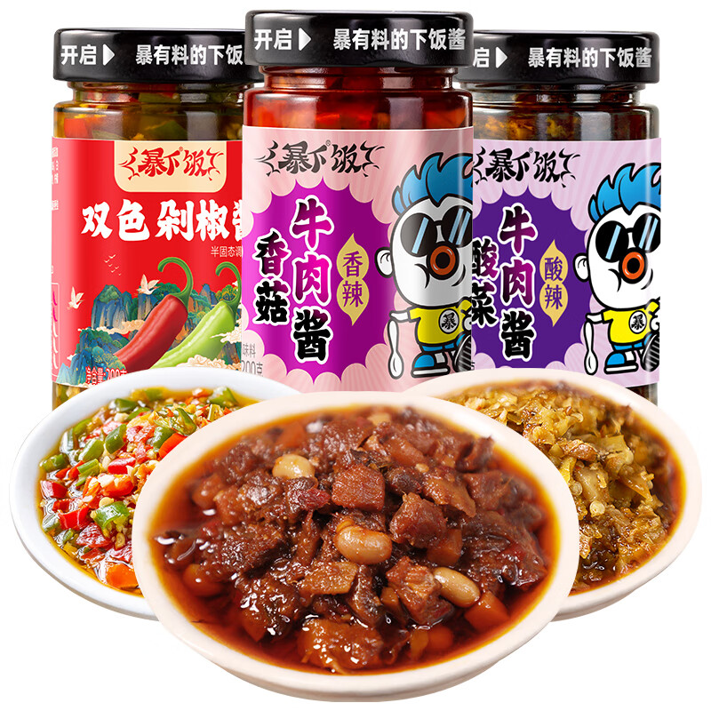 ¥18.9 吉香居 辣椒酱 暴下饭牛肉酱组合200g*3瓶 香菇酱剁椒酱下饭拌饭拌面酱 32.9