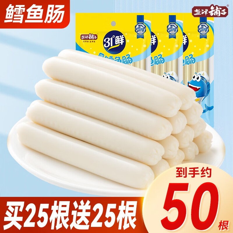¥19.9 盐津铺子 鳕鱼肠即食鱼肉肠火腿肠休闲海味零食 【买25根送25根】原味 500g 29.9