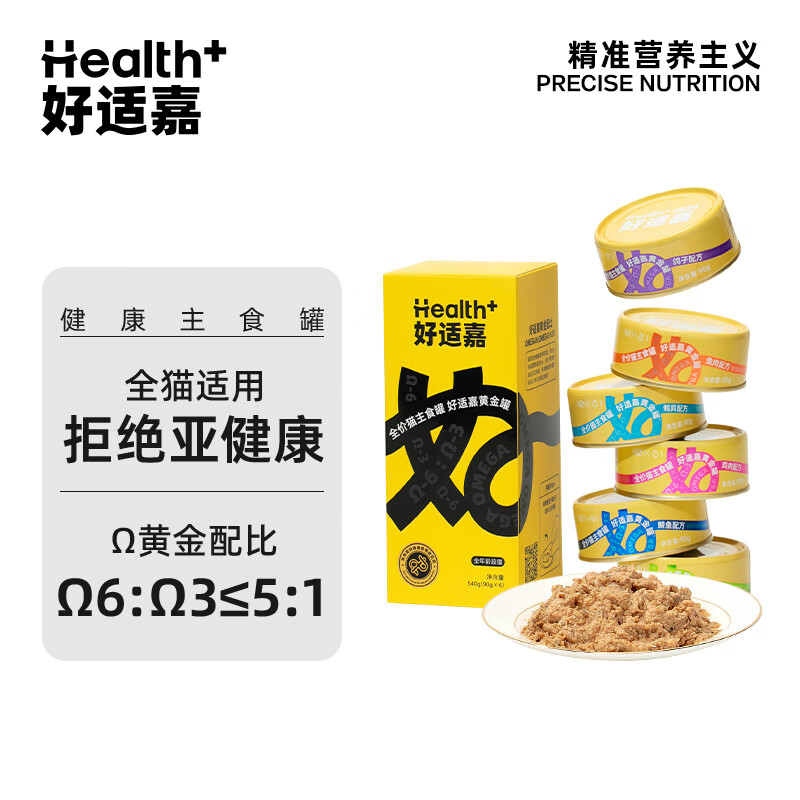 ¥38 好适嘉黄金罐 主食猫罐头猫咪全价主食罐头90g黄金比例美毛靓肤 【尝鲜】口味随机 6罐盒装 53