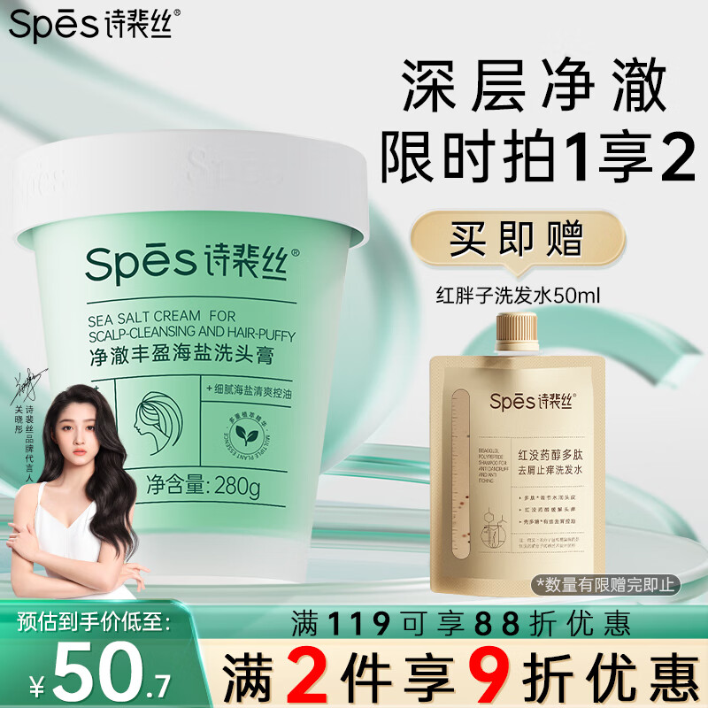 ¥55 Spes诗裴丝净澈丰盈海盐洗头膏280g 洗发水男士 女士 控油洗发水 65