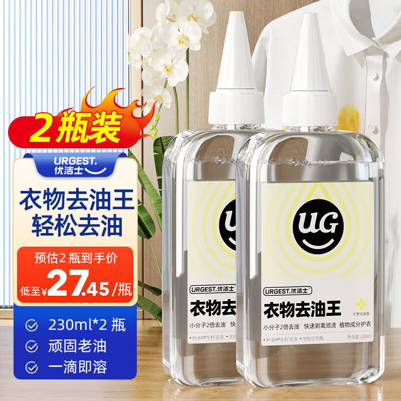 ¥54.9 优洁士去油渍衣服去油王干洗剂洗衣神器衣领净衣物渗透剂羽绒服清洗剂 衣物去油王2瓶装 59.9
