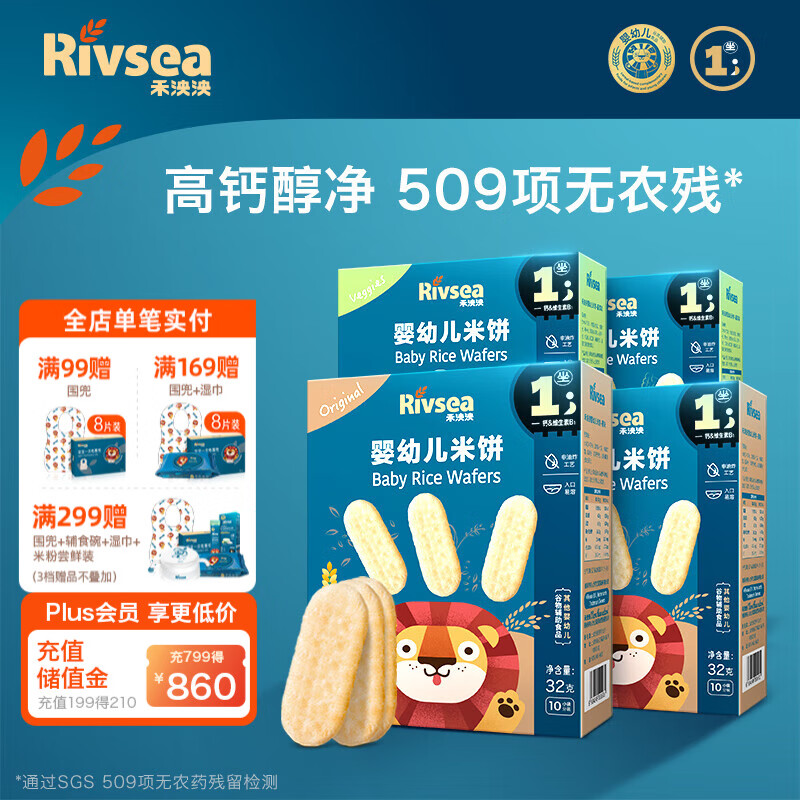 ¥102.2 禾泱泱婴幼儿米饼 宝宝零食6个月以上 无添加食用盐白砂糖锻炼抓 婴幼儿米饼4盒(原味2+蔬菜2) 119.2
