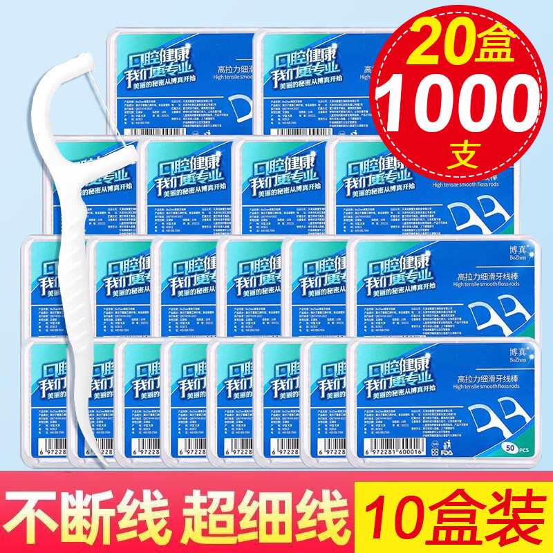 ¥19.9 博真经典牙线棒 家庭装家用牙签一次性牙线 20盒【共1000支】 39.9