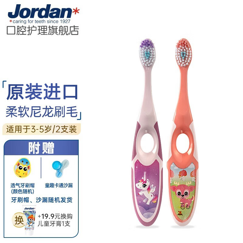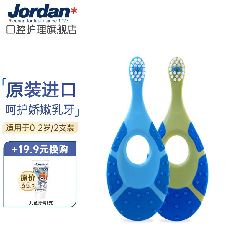 ¥27.9 Jordan婴幼儿童宝宝软毛牙刷0-1-2-3-5-9+岁训练护齿乳牙牙刷套装 3-5岁双支B2支 39.9