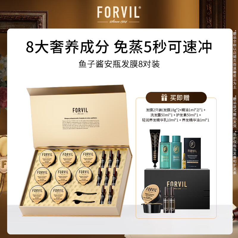 ¥218 温莎森林FORVIL鱼子酱安瓶发膜免蒸护理套装修护柔顺防毛躁8只装150ml 258