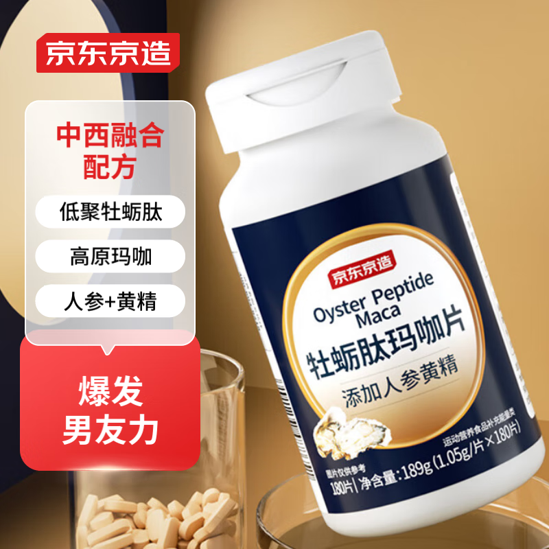 ¥59.9 京东京造 牡蛎肽玛咖片60天量 男性耐力男友力爆发生蚝精玛咖人参黄精 69.9