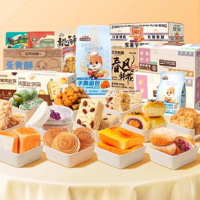 ¥29.6 拍4件!三只松鼠面包糕点点心组合共4箱 39.6