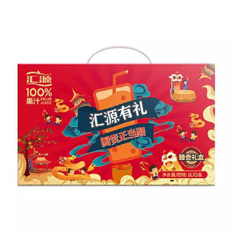 ¥39.9 汇源百分百果汁臻贵礼盒1000ml*5盒 69.9
