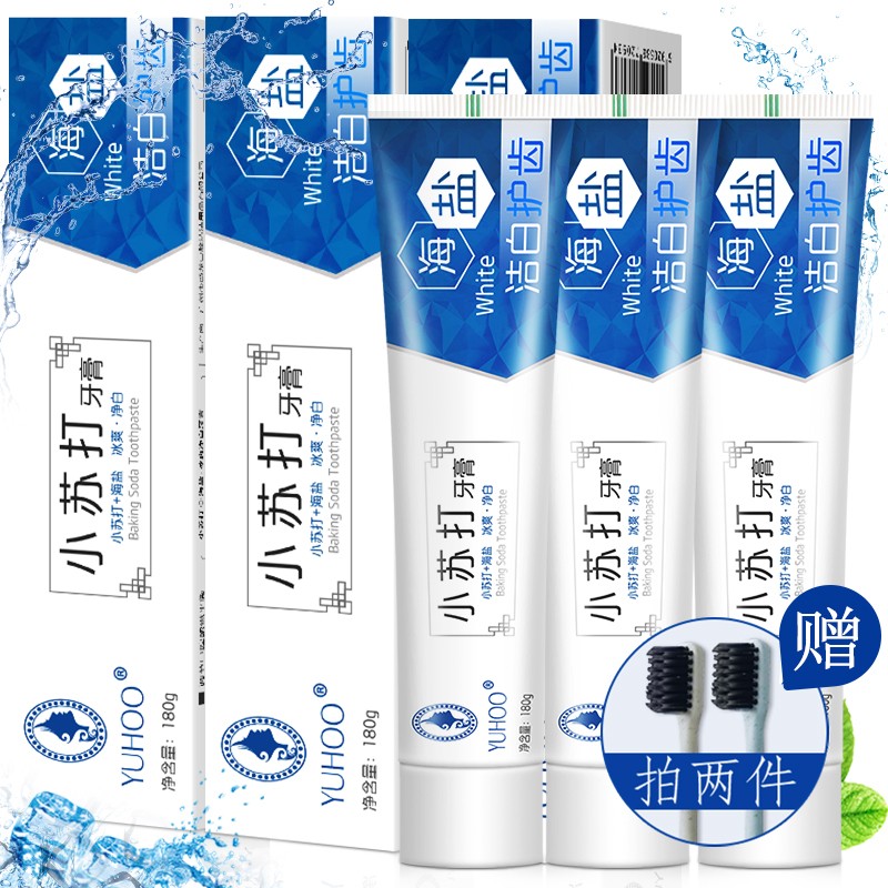 ¥6.9 媛后深海盐小苏打牙膏牙齿美亮白黄烟牙渍口气清新口气护牙素牙膏 海盐小苏打牙膏180g+牙刷2支 11.9