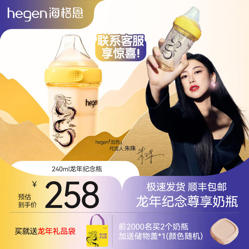 ¥188 HEGEN奶瓶新生儿防胀气PPSU奶瓶宝宝宽口径奶瓶原装进口龙年纪念龙瓶 240ml 3-6月 宝宝使用 288