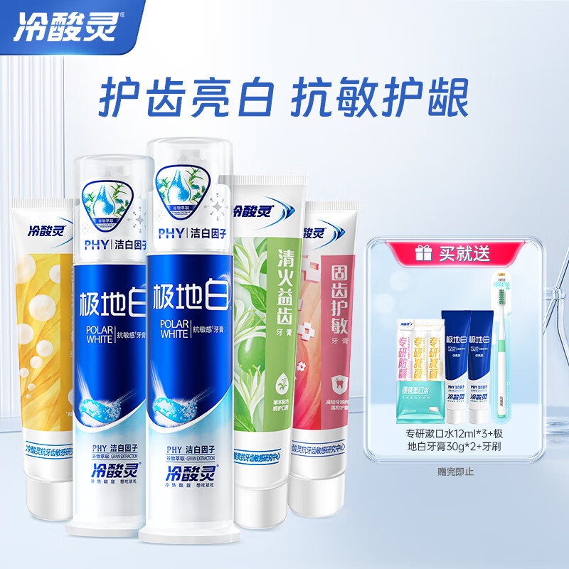 ¥39.9 冷酸灵多效美白牙膏专业抗敏感5支套装(共620g)清新口气 薄荷香型共 620g 5支 69.9