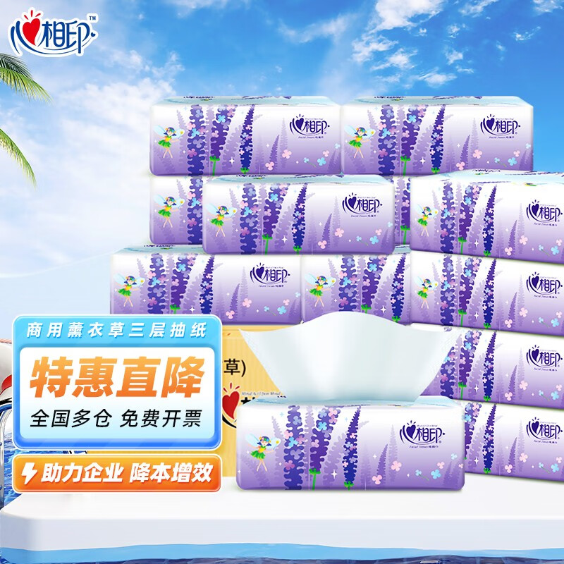 ¥24.9 心相印抽纸纸巾 薰衣草系列3层面巾纸 家用餐巾纸餐厅商用纸面巾实惠装 3层100抽 21包整箱 31.9