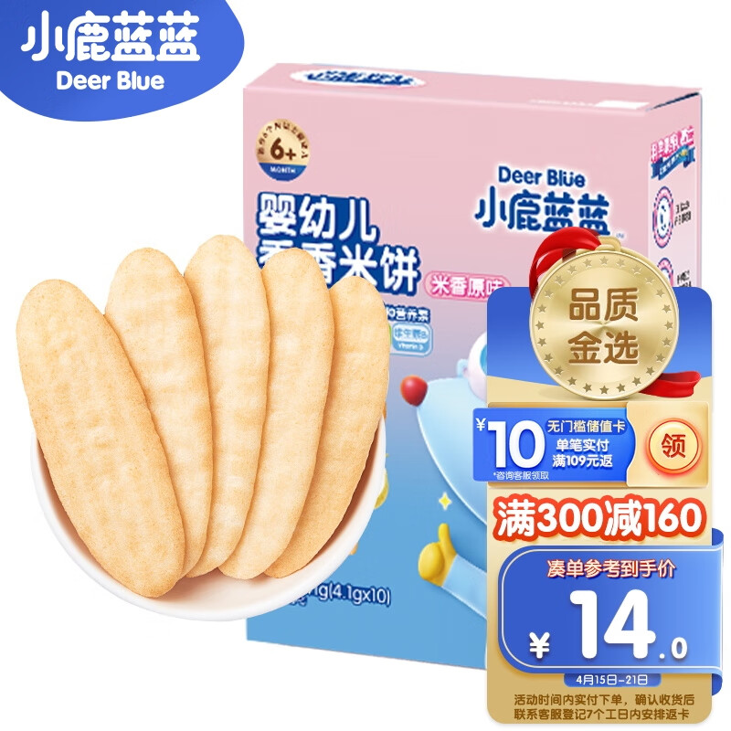 ¥9.9 小鹿蓝蓝_宝宝米饼原味 米饼婴儿零食营养儿童磨牙饼宝宝零食 41g 29.9